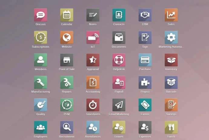 Odoo provides sales management, CRM, HRMS, E-commerce, warehouse management, and accounting.