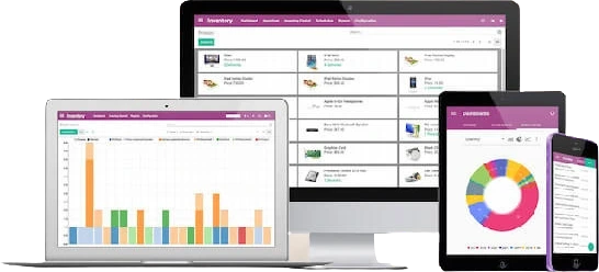 Odoo provides sales management, CRM, HRMS, E-commerce, warehouse management, and accounting.