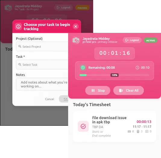 Pi Taskwatch solves this by integrating time tracking directly into your Odoo ecosystem. Every task, project update, and work hour is automatically captured and transformed into meaningful insights—helping teams stay focused while managers gain real-time visibility.