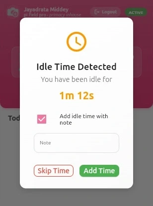 Pi Task watch silently captures time spent on tasks, applications, URLs, and idle moments. Entries flow into Odoo Time sheets and Projects in real‑time, eliminating manual logs.